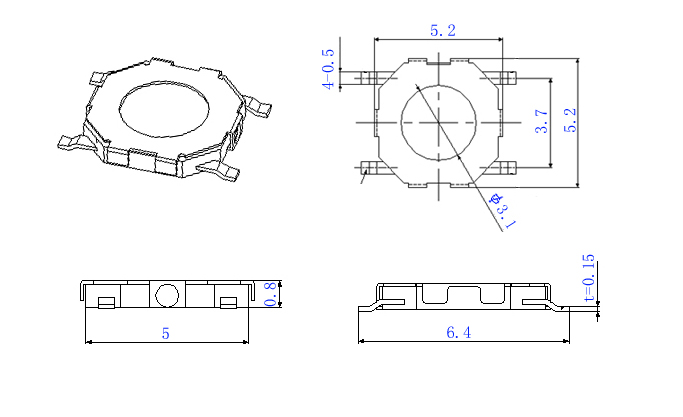 |  | 型號規(guī)格:TS4408系列 | 中文命名:4*4帶蓋防水型輕觸開關(guān) |