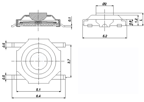 |  | 型號規(guī)格:TS44H系列 | 中文命名:4*4拉伸貼片防水型輕觸 |