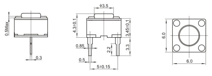 |  | 型號(hào)規(guī)格:TS66HDJ-3系列 | 中文命名:6*6短兩腳輕觸(腳長(zhǎng)3.3) |