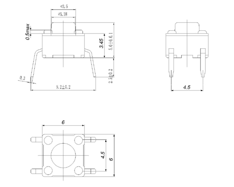 |  | 型號規(guī)格:TS66HM系列 | 中文命名:6X6四腳直插型輕觸開關(guān) |