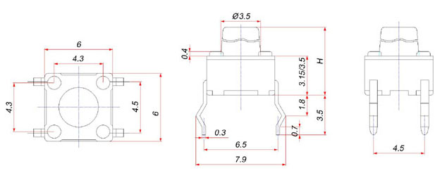 |  | 型號規(guī)格:TS66H系列 | 中文命名:6*6插腳型輕觸 |