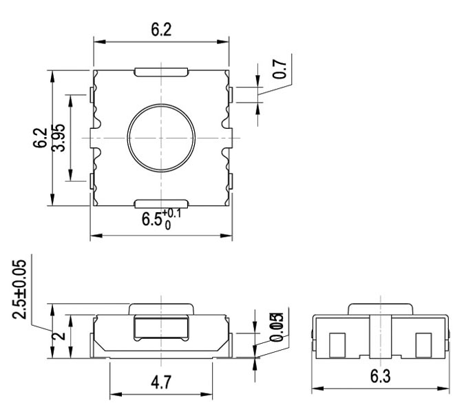 |  | 型號規(guī)格:TS6TP025W系列 | 中文命名:輕觸開關 |