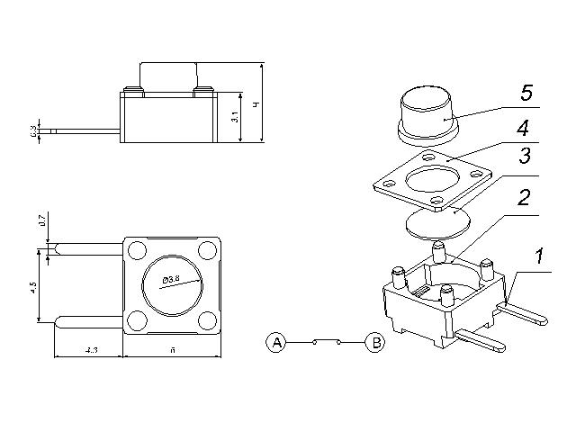 |  | 型號(hào)規(guī)格:TSCB66HF系列 | 中文命名:6*6橫兩腳常閉輕觸開關(guān) |