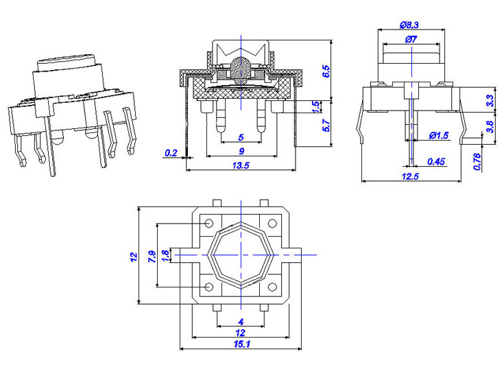 |  | 型號規(guī)格:TSD1265系列 | 中文命名:12*12帶燈型按鈕 |