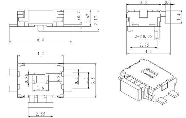|  | 型號規(guī)格:TSG1175系列 | 中文命名:中龜型防水輕觸開關(guān) |