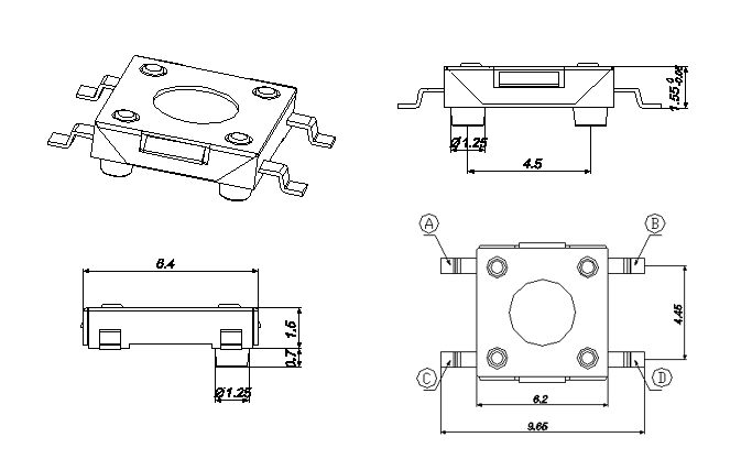 |  | 型號規(guī)格:TSTP015系列 | 中文命名:1.5超薄定位平座輕觸開關 |