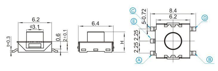 |  | 型號規(guī)格:TSTPCBH系列 | 中文命名:6*6貼片輕觸開關(guān) |