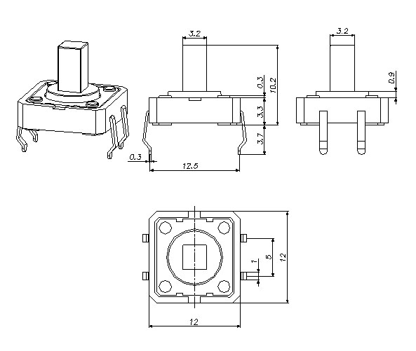 |  | 型號規(guī)格:TSZ12102系列 | 中文命名:12*12長方按鈕插腳型輕觸 |