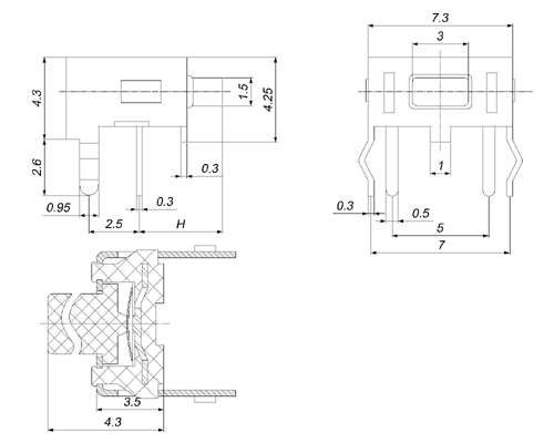 |  | 型號規(guī)格:TSZJ36H系列 | 中文命名:3*6支架輕觸開關(guān) |