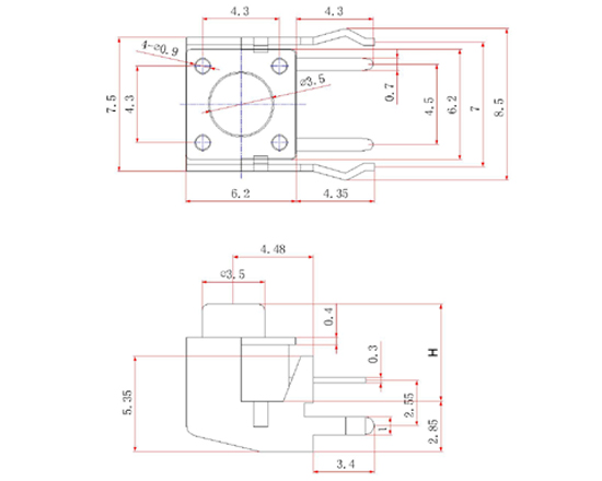 |  | 型號規(guī)格:TSZJ66H系列 | 中文命名:6x6支架輕觸開關(guān) |