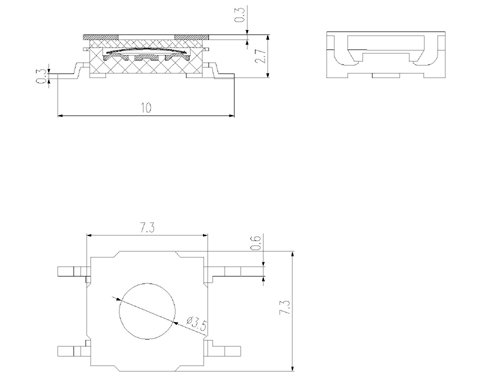 |  | 型號規(guī)格:WSTP027系列 | 中文命名:藍防水無帽貼片型輕觸 |